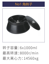 No1 | 角轉(zhuǎn)子 | 6×1000ml | 8000r/min | 14560xg |